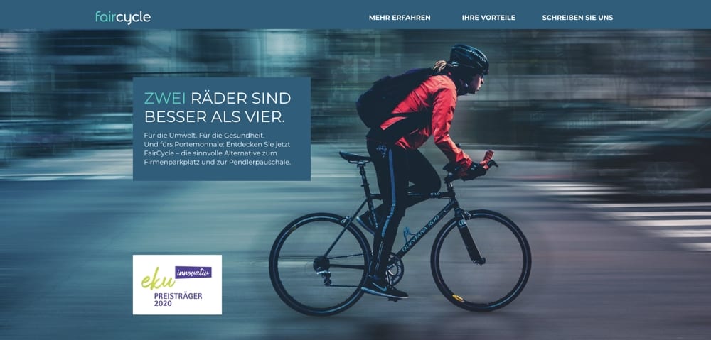 The idea behind Faircycle is to encourage eco-friendly ways of commuting between home and work. For every kilometer driven a company doubles the effort by compensating the amount of saved CO2 emissions.